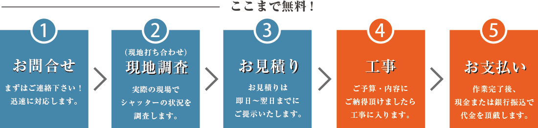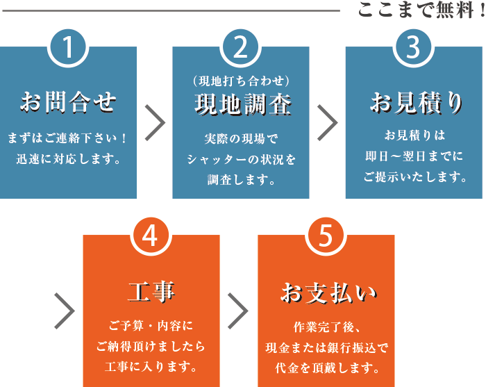 当社のお見積もりは、工事費込みの安心価格です!既存車庫・倉庫シャッターの電動化・取替(電動・手動)・新規取付などお気軽にお問い合わせください!